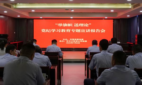 為深入學(xué)習(xí)貫徹習(xí)近平總書(shū)記關(guān)于加強(qiáng)黨的紀(jì)律教育的重要論述,推動(dòng)黨紀(jì)學(xué)習(xí)教育走深走實(shí)。7月8日,市國(guó)資委宣講團(tuán)來(lái)到市引江投資公司,開(kāi)展“舉旗幟 送理論”黨紀(jì)學(xué)習(xí)教育專題宣講活動(dòng),公司黨委書(shū)記、董事長(zhǎng)郭星攜領(lǐng)導(dǎo)班子成員及全體黨員員工參加活動(dòng)。