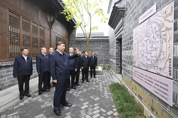 10月17日至18日,中共中央總書記、國(guó)家主席、中央軍委主席習(xí)近平在安徽考察。這是17日下午,習(xí)近平在安慶桐城市六尺巷考察。新華社記者 燕雁 攝