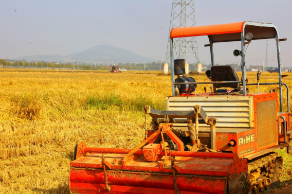 今天恰逢水稻收割的熱鬧場(chǎng)景——一臺(tái)臺(tái)收割機(jī)正在稻田中歡快地穿梭著,將飽滿的稻穗攬入其中,留下一排排整齊的稻茬……曾經(jīng)的棄土場(chǎng),如今變成了肥沃的農(nóng)田,孕育出了豐收的果實(shí)。